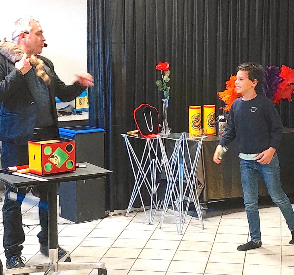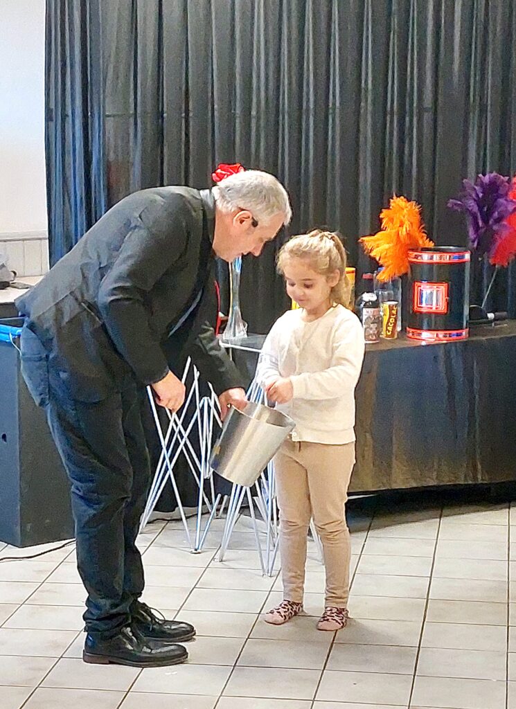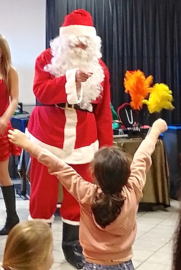 Par une belle journée ensoleillée du dimanche 14 décembre notre municipalité avait organisé cette après-midi festive tant attendue par les enfants ainsi que leurs parents. Notre maire prononça une petite allocution puis le spectacle de magie se déroula pendant une heure avec la participation effective des enfants. Le père Noël arriva comme par magie pour enfin distribuer aux enfants leur cadeau. La Société des Fêtes offrant par ailleurs une place de cinéma aux enfants scolarisés. Ce fut ensuite le moment tant attendu du goûter par les petits et les parents .